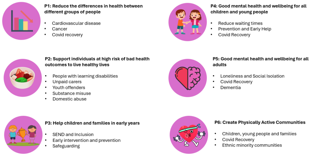 The Board has also adopted a Strategy into Action which outlines key areas of focus under each of the five Berkshire West Strategy priorities. It also adds a sixth priority of Creating Physically Active Communities.